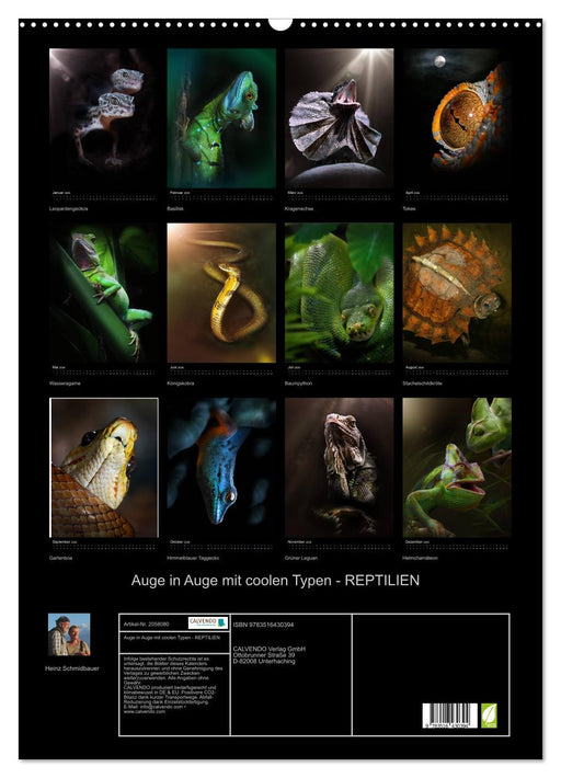 Imposante Porträtaufnahmen von wunderschönen Reptilien. Liebevoll fotografiert von Heinz und Renate Schmidbauer (Monatskalender, 14 Seiten) Auge i...