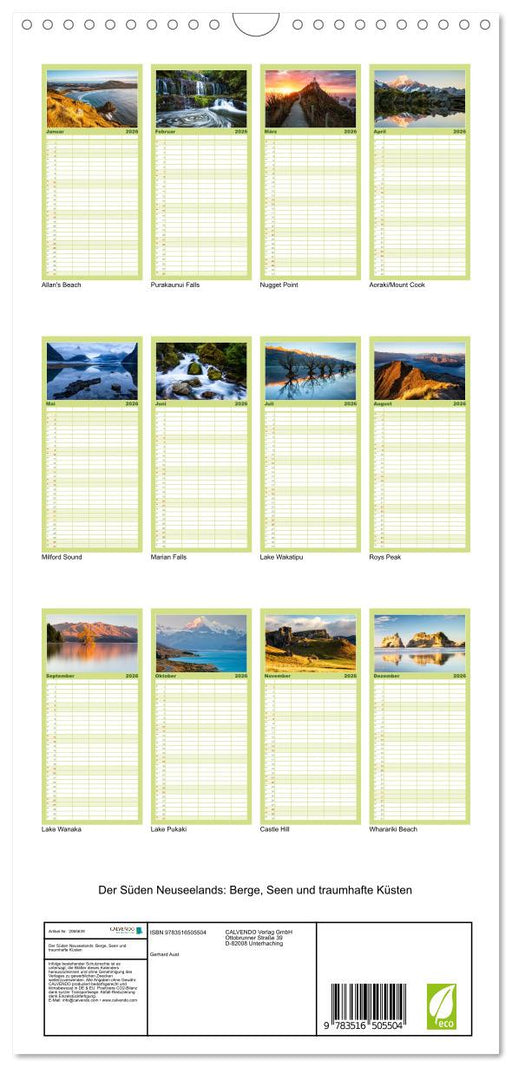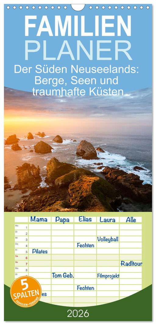 Der Süden Neuseelands: Berge, Seen und traumhafte Küsten (CALVENDO Familienplaner 2026)