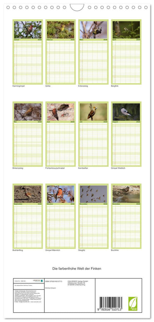 View full detailsDie farbenfrohe Welt der Finken (CALVENDO Familienplaner 2026)