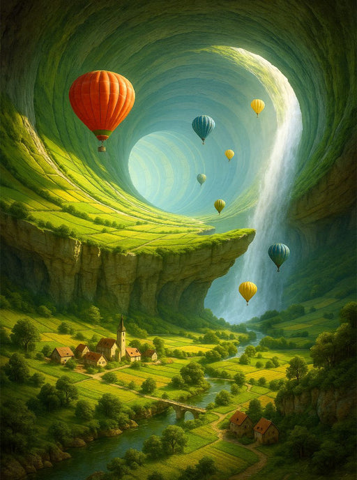 Dieses Bild entführt dich in surreale Ballonfahrten, bei denen schwebende Farben und unmögliche Landschaften in atemberaubender Weise aufeinander...