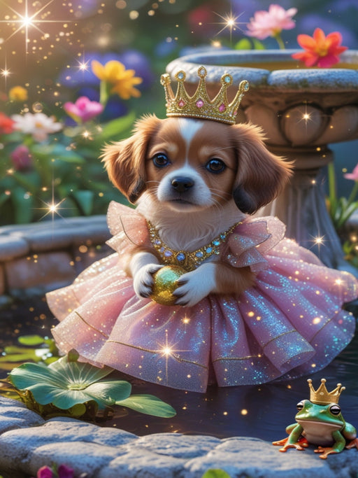 Ein Hundewelpe trifft am Märchenbrunnen auf den verwunschenen Prinzen. Das Märchen vom Froschkönig erscheint in neuer Form: Ein Hundewelpe verkörp...
