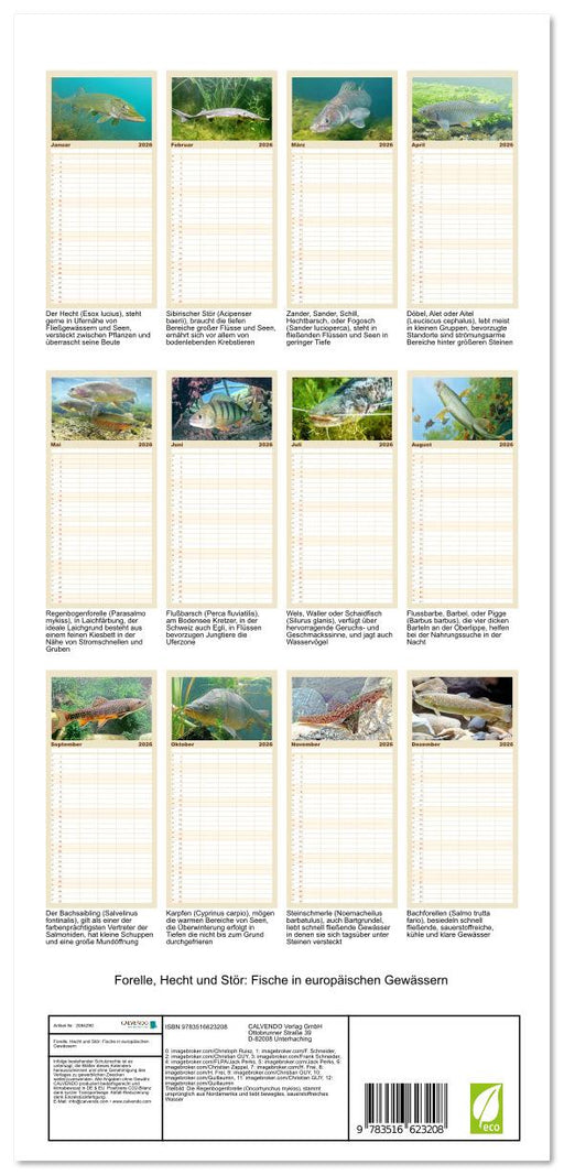 View full detailsForelle, Hecht und Stör: Fische in europäischen Gewässern (CALVENDO Familienplaner 2026)