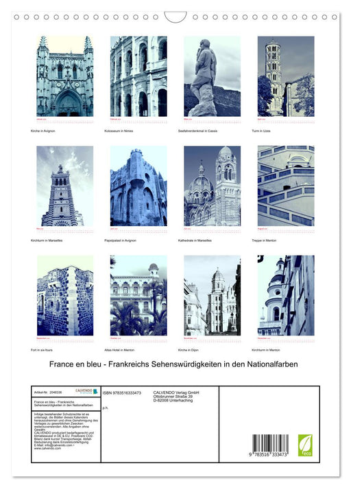 Frankreich durch die blaue Brille betrachtet (Monatskalender, 14 Seiten) Angelehnt an die Farben der fränzösischen Flagge, hier Sehenswürdigkeiten...