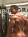 Ein muskulöser Mann zeigt sich nackt und selbstbewusst im Fitnessstudio. Sein Rücken, Po und trainierter Körper stehen im Mittelpunkt - ein heißes Bild für alle, die erotische Männerbilder lieben.
