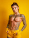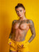 Dieses erotische Motiv zieht sofort Blicke auf sich: Eine tätowierte Frau, nackt, sexy und voller Energie. Ihr Busen steht im Fokus, ebenso wie ihre kunstvollen Tattoos, die ihren trainierten Körper betonen. Die kräftige gelbe Farbwelt unterstreicht den modernen, auffälligen Look. Dieses Puzzle richtet sich an Männer mit Lust auf heiße, selbstbewusste Frauen, aber auch an Paare, die Erotik mit Stil genießen. Ob als reizvoller Hingucker im Hobbyraum oder als Anregung für die Fantasie - dieses Motiv bietet pure visuelle Spannung. Die Kombination aus Körperkunst, Nacktheit und Ausstrahlung macht es zu einem erotischen Highlight für Erwachsene mit Geschmack. Bild mit KI generiert.