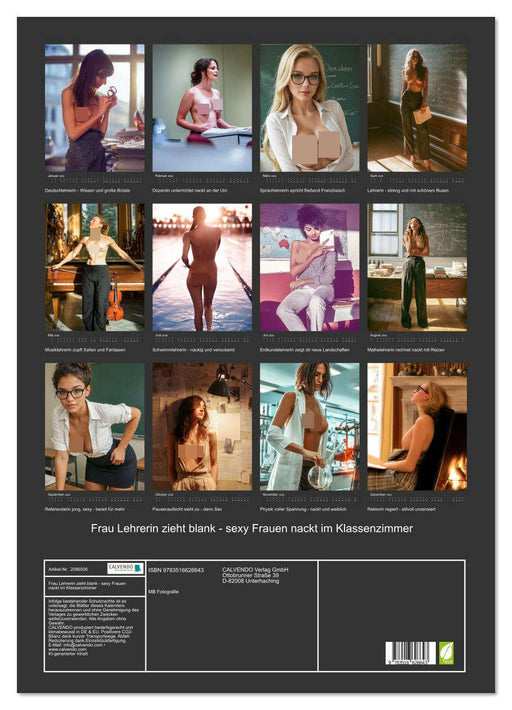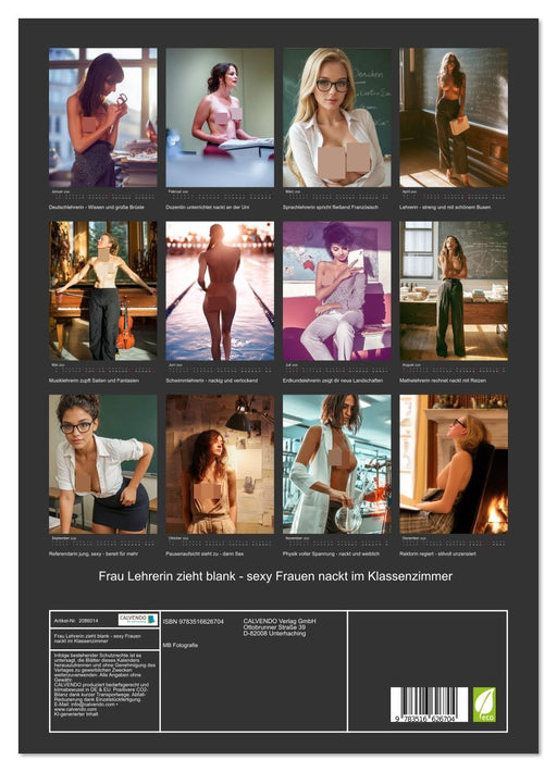 Erotischer Frauenkalender: Nackt, sexy und verführerische Frauen im Lehrberuf. Heiße Brüste und hübsche Frauen schmücken das Klassenzimmer. (Monat...