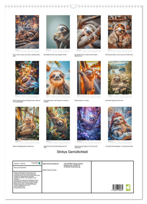 Dieser bezaubernde Kalender begleitet Slinky, das charmante Faultier, durch ein Jahr voller entspannter und friedlicher Momente. (Monatskalender, ...