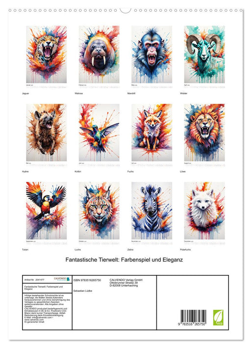 Dieser einzigartige Kalender zeigt 12 beeindruckende Kunstwerke, die Tiere in kreativen, abstrakten und zeitgenössischen Stilen darstellen. (Monat...