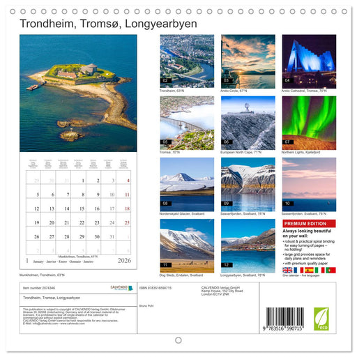 Trondheim, Tromsø, Longyearbyen (CALVENDO Monthly Calendar 2026)