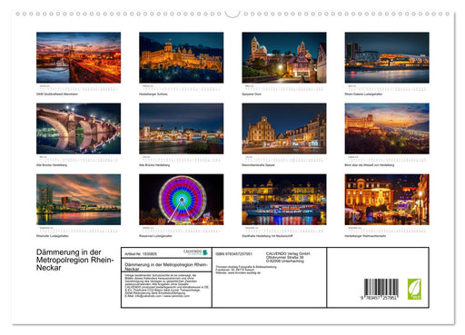 12 stimmungsvolle Aufnahmen zwischen Tag und Nacht. (Monatskalender, 14 Seiten) Erleben Sie die magische Schönheit der Metropolregion Rhein-Neckar...