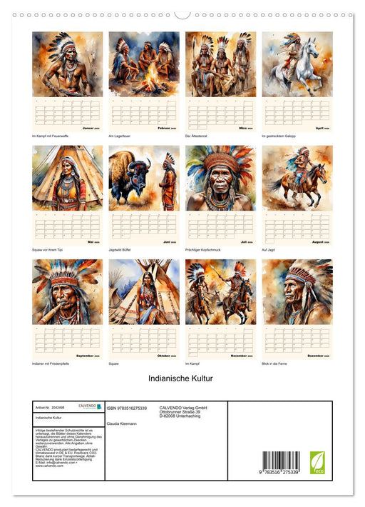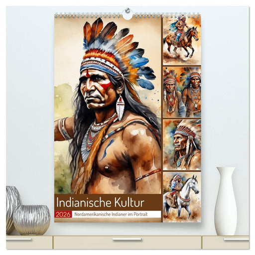 Nordamerikanische Indianer im Portrait - Aquarelle der KI (Monatskalender, 14 Seiten) Die indianische Kultur umfasst die Traditionen, Bräuche, Spr...