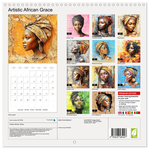 This captivating calendar presents a collection of artistic portraits, celebrating the beauty and diversity of African women. (Monthly calendar, 1...