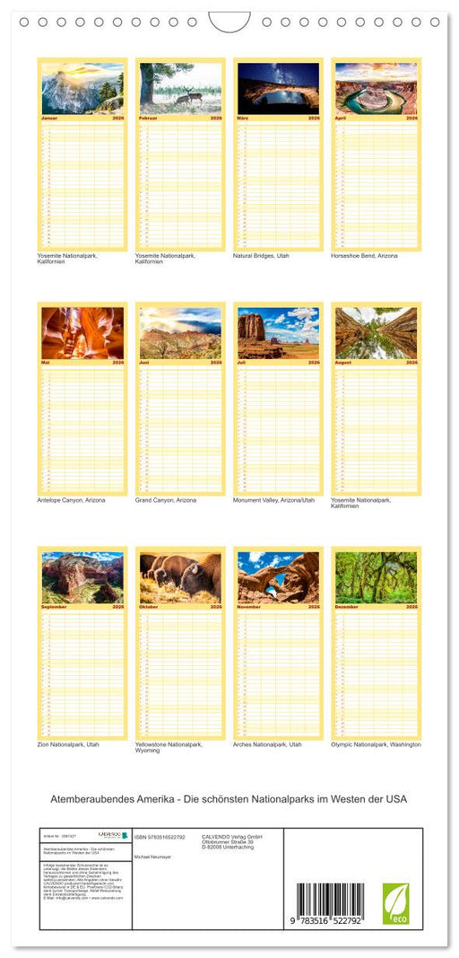 Atemberaubendes Amerika - Die schönsten Nationalparks im Westen der USA (CALVENDO Familienplaner 2026)