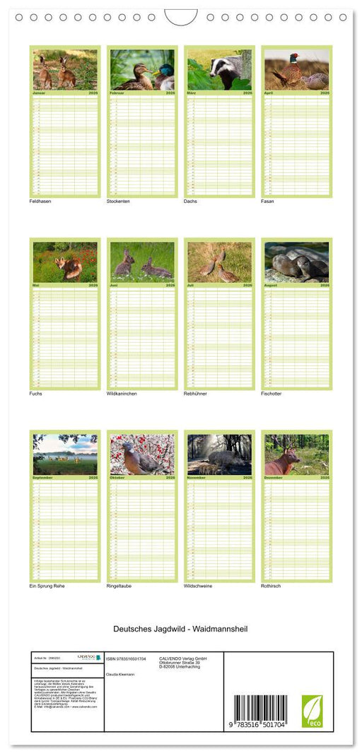 View full detailsDeutsches Jagdwild - Waidmannsheil (CALVENDO Familienplaner 2026)