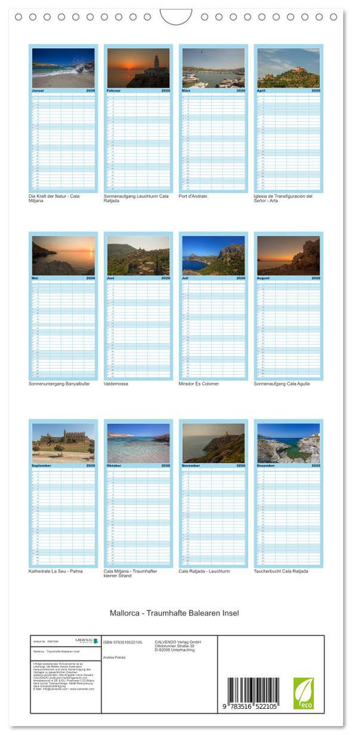 Mallorca - Traumhafte Balearen Insel (CALVENDO Familienplaner 2026)