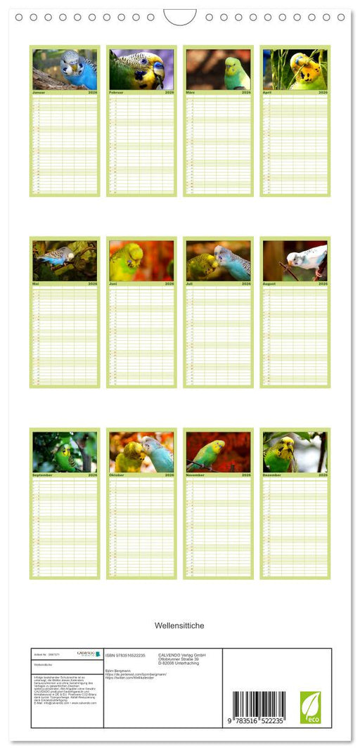 Wellensittiche (CALVENDO Familienplaner 2026)