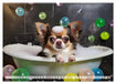Januar: Chihuahua entspannt bei einem Bad in der Wanne mit vielen bunten Seifenblasen