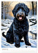 Januar: Schwarzer Labradoodle im weißen Schnee