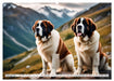 Der Bernhardiner ist eine alte Hunderasse, ihr Ursprung wird im 17. Jahrhundert vermutet. Die Mönche des Klosters auf dem Großen St. Bernhard erstmalig gezüchtet. Die frühen St. Bernhardshunde halfen in den Bergen als Lawinenhunde und haben mit dem heutigen Bernhardiner nur eine entfernte Ähnlichkeit. Der Bernhardiner ist heutzutage auf Grund der Rassenentwicklung für diese Aufgabe nicht mehr geeignet; er ist zu schwer und massig geworden und wurde als Lawinenhund von Hunden anderer Rassen abgelöst. Die Rasse kann eine Schulterhöhe bis zu 90 cm erreichen. Heute ist der Bernhardiner ein treuer Haus- und Begleithund. Seit 1884 gilt er als Schweizer Nationalhund. Mit Hilfe der KI wurde die imposante Rasse in Szene gesetzt.