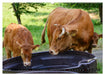 Juli: Landwirte sorgen besonders im Sommer für Bottiche mit ausreichend Wasser für die Rinder mit ihren Kälbern.