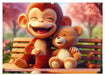 Juni: Affe und ein Bär sitzen lachend auf einer Parkbank, ein Beweis für wahre Freundschaft