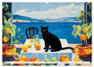Mai: Katze vor mediterranem Meer
