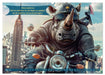 Mai: Nashorn beim Motorradfahren
