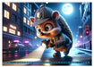 März: Nächtliche Patrouille: Der Hase auf Motorradstreife in der leuchtenden Metropole