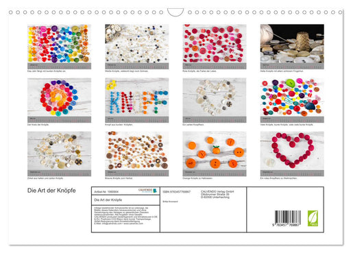 Freude an der Vielfalt, Schönheit, Farbe und Ästhetik der Knöpfe. (Monatskalender, 14 Seiten) Erfreuen Sie sich an der Vielfalt der Knöpfe: große,...