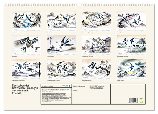 Ein Jahr der Schwalben mit KI-Darstellungen im Stil chinesischer Tuschemalerei (Monatskalender, 14 Seiten) Tauchen Sie ein in die Welt der Schwalb...