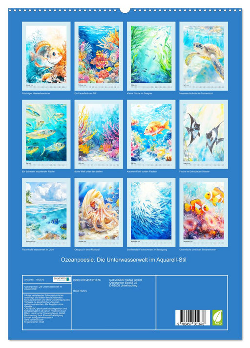 Ozeanpoesie. Die Unterwasserwelt im Aquarell-Stil (CALVENDO Premium Wandkalender 2026)