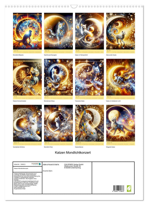 Zauberhafte Symbiose aus Katzen und goldenem Mondlichtschimmer, mit KI erstellt. (Monatskalender, 14 Seiten) Dieser qualitativ hochwertige Kalend...