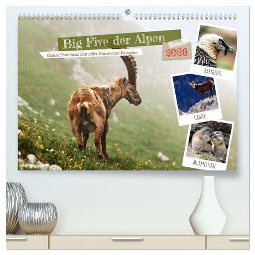 Big Five der Alpen Gämse, Steinbock, Murmeltier, Steinadler, Bartgeier (CALVENDO Premium Wandkalender 2026)