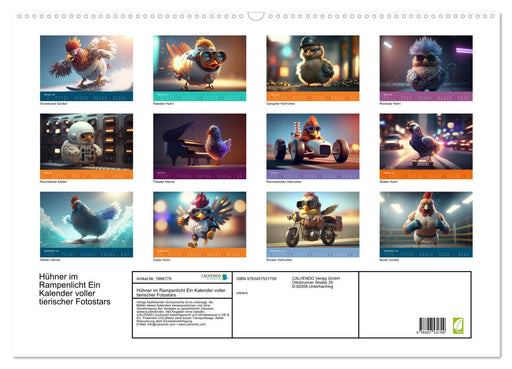 In diesem Hühnerkalender stehen die Federtiere im Rampenlicht und zeigen ihre besten Seiten als Superhelden, Rockstars und Sportler (Monatskalende...