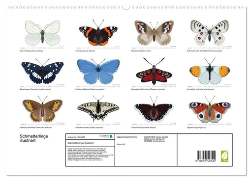 Illustrationen heimischer Schmetterlinge (Monatskalender, 14 Seiten) Verschönern Sie Ihre Räume mit der dekorativen Kraft illustrierter Schmetterl...
