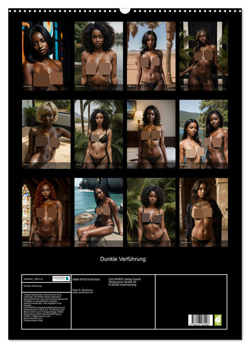 Dunkelhäutige Frauen in sinnlichen Posen (Monatskalender, 14 Seiten) Der Kalender "Dunkle Verführung" präsentiert eine exquisite Sammlung KI-gener...