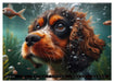 Januar: King Charles Cavalier taucht im grünen Wasser