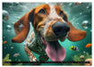 Juli: Deutscher Jagdhund tauch fröhlich unter Wasser