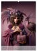 Januar: Femme Fatale in lila mit einem exotischen Pfauenvogel