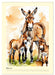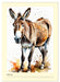 Der Esel hat einen stämmigen Körperbau, sein Fell ist meist grau oder braun. Die Ohren sind groß und spitz zulaufend. Das Gesicht ist markant mit großen dunklen Augen. Esel haben eine charakteristische Stimme, die wie "I-Ah" klingt. Esel gelten als sehr geduldige und genügsame Tiere. Speziell früher wurden sie oft als Arbeitstiere eingesetzt, um schwere Lasten zu tragen oder auf Feldern zu arbeiten. Heutzutage werden Eselswanderungen immer beliebter. Esel sind intelligente und sensible Tiere, die eine enge Bindung zu ihren Besitzern aufbauen. Mithilfe der KI wurden zauberhafte Aquarelle dieser Charakterköpfe erstellt.