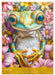 Januar: Der Frosch liegt ganz entspannt im Blumenfeld