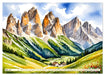 Italien ist ein Land im Süden Europas, das für seine reiche Geschichte, Kunst, Kultur und Küche bekannt ist. Es erstreckt sich von den Alpen im Norden bis zum Mittelmeer im Süden und umfasst beliebte Reiseziele wie Rom, Venedig, Florenz und Mailand. Italien ist berühmt für seine antiken römischen Ruinen, Renaissance-Kunstwerke, Modehäuser und köstliche Küche, die Pasta, Pizza, Gelato und Espresso umfasst. Das Land hat auch eine vielfältige Landschaft, die von den malerischen Küsten bis zu majestätischen Bergen reicht. Die Italiener sind bekannt für ihre Leidenschaft und Gastfreundschaft, was das Land zu einem beliebten Reiseziel für Besucher aus der ganzen Welt macht. Das vielfältige Land wir hier mit Hilfe der KI in künstlerischen Aquarellen vorgestellt.