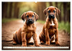 Der ursprünglich aus Südafrika stammende Rhodesian Ridgeback ist eine große, muskulöse Hunderasse mit einem stolzen und selbstbewussten Aussehen. Sie haben eine charakteristische "Ridge" auf ihrem Rücken, bei der das Fell entgegengesetzt zur restlichen Fellrichtung wächst und eine Linie bildet. Ihr Fell in Brauntönen ist kurz und glänzend. Sie haben dunkle Augen und Ohren, die nach vorne geklappt sind. Diese Hunde sind bekannt für ihre Ausdauer, Schnelligkeit und Kraft. Sie wurden ursprünglich als Jagdhunde gezüchtet und sind daher sehr energiegeladen und aktiv. Rhodesian Ridgebacks sind loyal, mutig und intelligent. Sie sind eine gute Wahl für erfahrene Hundebesitzer, die die Bedürfnisse dieser aktiven Rasse erfüllen können. Die zauberhafte Rasse wurde mit Hilfe der KI in Szene gesetzt.