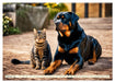 Der Rottweiler ist eine der ältesten Hunderassen der Welt. Bereits die Römer wussten die große Kraft der Hunde zu schätzen. Die auch als „Metzgerhunde“ bekannten Tiere wurden im Verlauf von mehreren Jahrhunderten speziell auf Ausdauer, Treibeigenschaften und Intelligenz hin gezüchtet. Dank ihrer ausgeprägten Wachsamkeit, ihrem bedingungslosen Schutzinstinkt machten sie sich zu unentbehrlichen Helfern. Seit 1910 wurde der Rottweiler offiziell als Diensthund anerkannt und ist bis heute im Polizeidienst und Grenzschutz tätig. Die bis zu 68 cm große Rasse ist aufgrund dieses Schutzinstinktes nur für erfahrene Hundehalter geeignet. Die ausdrucksstarke Rasse wurde mithilfe der KI in Szene gesetzt.