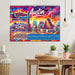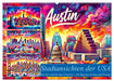 Einzigartige Skylines mit integrierten Attraktionen – von New York bis San Francisco. Jede Stadt wird in lebendigen Tuschefarben kunstvoll dargestellt und präsentiert die Highlights amerikanischer Metropolen.