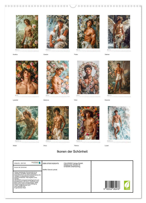 Der Kalender fängt die Essenz und den Reiz von Männern im Adonis-Stil ein, indem sie sowohl ihre körperliche als auch ihre innere Schönheit hervor...