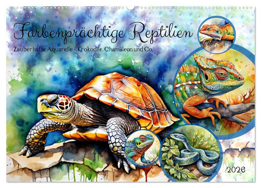 Zauberhafte Aquarelle - Krokodile, Chamäleon und Co. (Monatskalender, 14 Seiten) Mithilfe der KI habe ich verschiedene Reptilien als Aquarelle far...