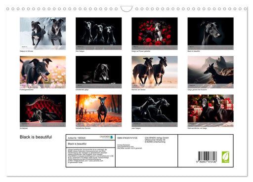 Schwarze Galgos sind echte Schönheiten (Monatskalender, 14 Seiten) Die spanischen Windhunde (Galgos) gibt es in vielen Farbvariationen. Dieser Kal...