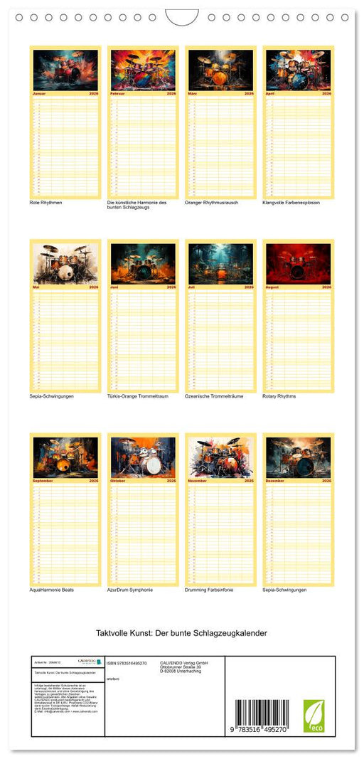 Taktvolle Kunst: Der bunte Schlagzeugkalender (CALVENDO Familienplaner 2026)