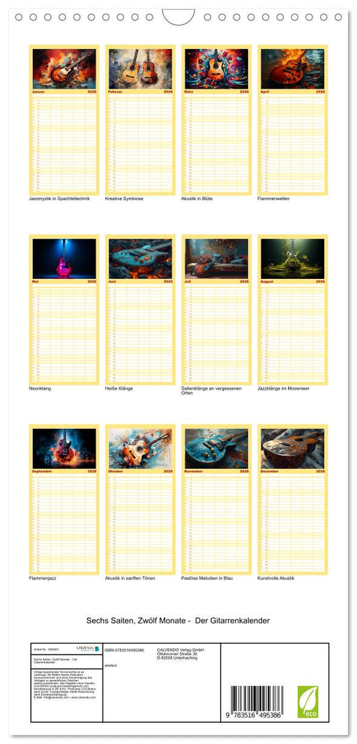 View full detailsSechs Saiten, Zwölf Monate - Der Gitarrenkalender (CALVENDO Familienplaner 2026)